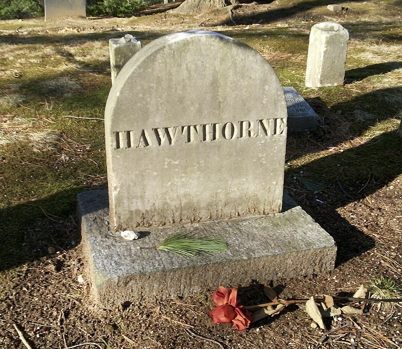 Hawthorne’s funeral was held at Concord’s First Parish. He held a dim view of religion generally, and there’s no evidence that he was ever a member of the First Parish, but it was the biggest room in town. His pallbearers included Ralph Waldo Emerson, Bronson Alcott, and Henry Wordsworth Longfellow, the latter another Bowdoin College classmate. He was laid to rest on Authors’ Ridge in Concord’s Sleepy Hollow Cemetery.
